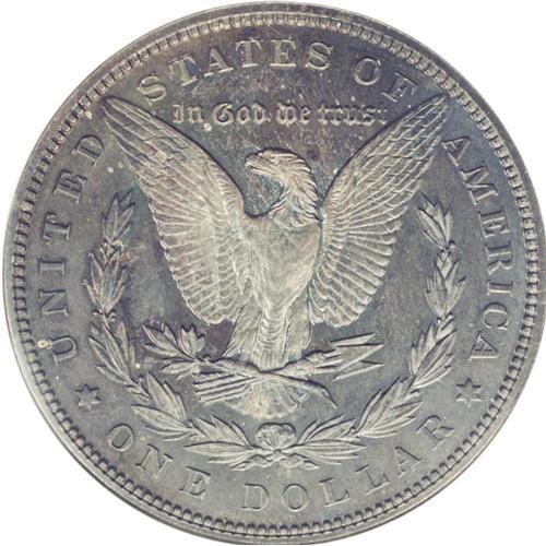 <B>1900<img border='0' src='http://www.heritagecoins.com/images/star.gif' width=10 height=10>$1> PR64 ANACS.</B></I> A deeply toned, near-Gem example exhibiting deeply mirrored fields as the coin turns under a light source. A mixture of reddish-gold and sea-green toning amply coats each side. Just a few small marks are detected in the fields that serve to limit the grade.