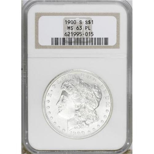 <B>1900-S $1 MS63 Prooflike NGC.</B></I> NGC Census: (46/82). PCGS Population (58/110). Numismedia Wsl. Price for NGC/PCGS coin in MS63: $420. (#7271)<BR><BR><B>Coin Engraver:</B> George T. Morgan<BR><BR><b>Shipping:</b> Coins & Currency (<a target="_blank" href="http://www.heritageauctions.com/common/shipping.php">view shipping information</a>)