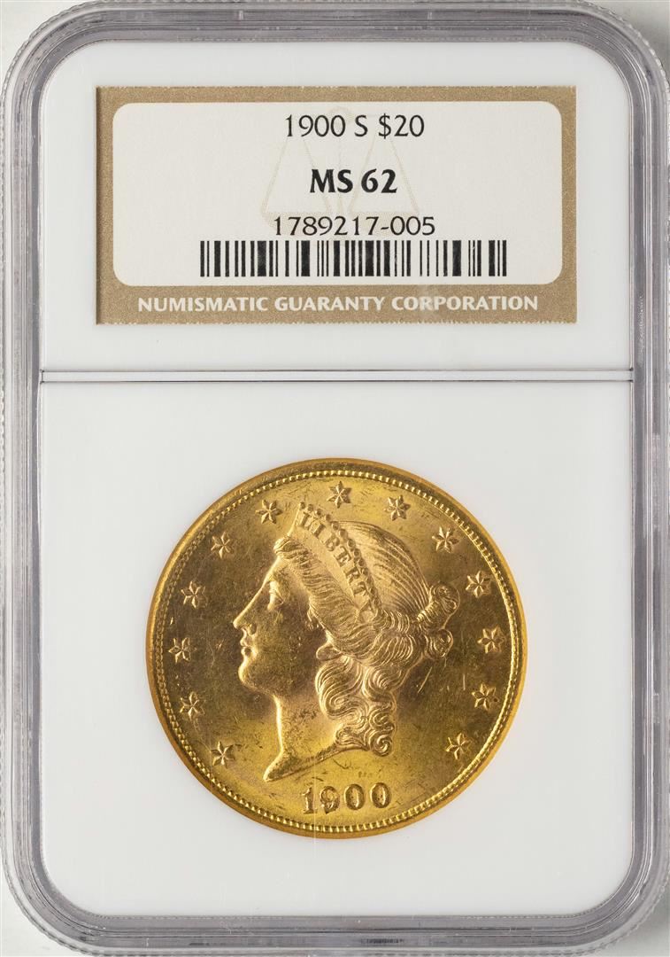 One 1900-S $20 Liberty Head Double Eagle Gold Coin NGC MS62. NGC Certified.