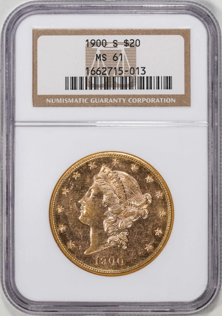 One 1900-S $20 Liberty Head Eagle Gold Coin NGC MS61. NGC Certified.