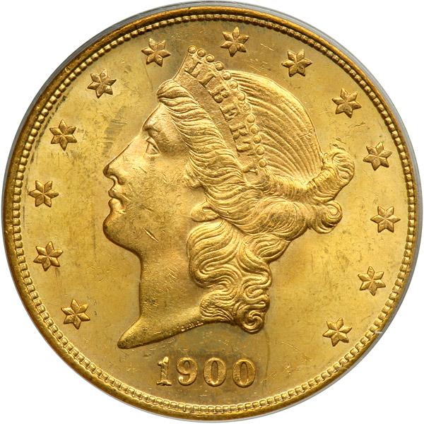 1900-S $20 Liberty. PCGS graded MS-63. Delicate golden toning, smooth flowing luster throughout, with endless eye-appeal that should have bidders lining up (PCGS # 9038) .
