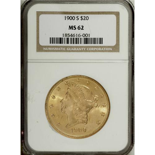 1900-S $20 MS62 NGC. Highly lustrous with an attentive