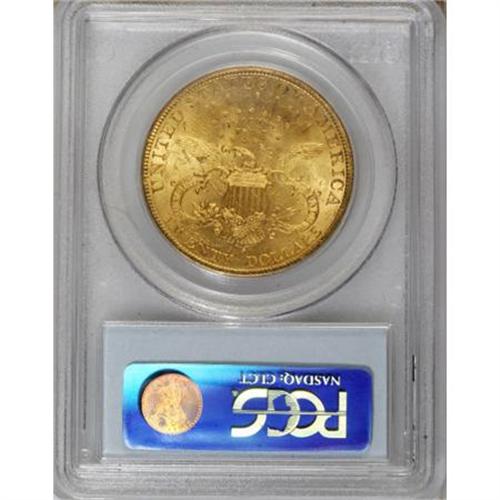 <B>1900-S $20 MS62 PCGS.</B></I> PCGS Population (1388/777). NGC Census: (1912/650). Mintage: 2,459,500. Numismedia Wsl. Price for NGC/PCGS coin in MS62: $740. (#9038)<BR><BR><B>Coin Engraver:</B> James B. Longacre<BR><BR><b>Shipping:</b> Coins & Currency (<a target="_blank" href="http://www.heritageauctions.com/common/shipping.php">view shipping information</a>)
