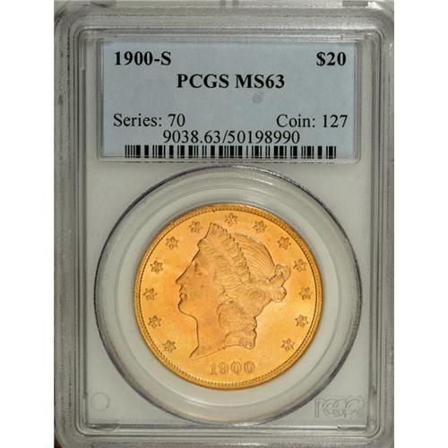 1900-S $20 MS63 PCGS. A particularly pleasing coin wit