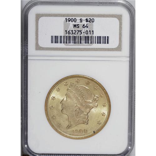 1900-S $20 MS64 NGC. Sharply struck throughout, save o