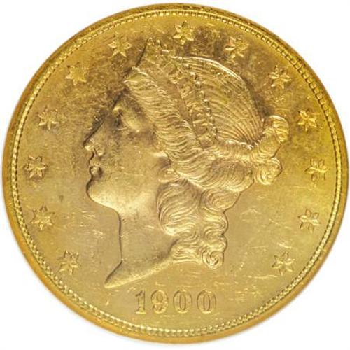 <B>1900-S $20 MS62 Prooflike NGC.</B></I> NGC Census: (8/2). PCGS Population (0/0). Mintage: 2,459,500. (#79038)<BR><BR><B>Coin Engraver:</B> James B. Longacre<BR><BR><b>Shipping:</b> Coins & Currency (<a target="_blank" href="http://www.heritageauctions.com/common/shipping.php">view shipping information</a>)