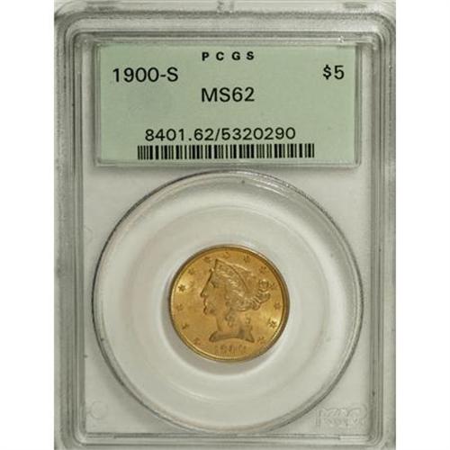 1900-S $5 MS62 PCGS. PCGS Population (81/381). NGC