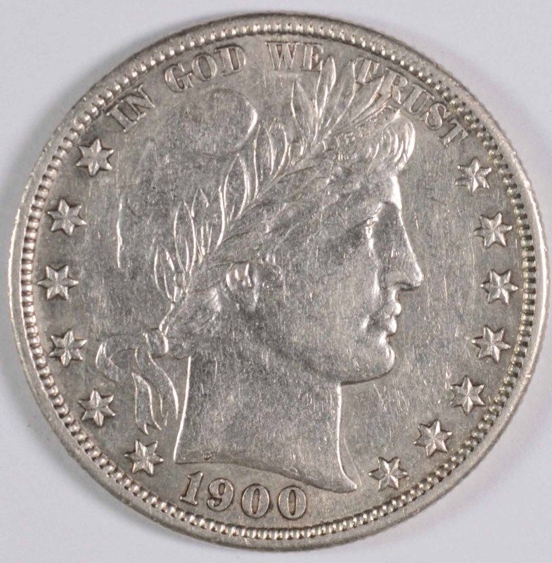1900-S BARBER HALF DOLLAR, AU-55 SCARCE DATE