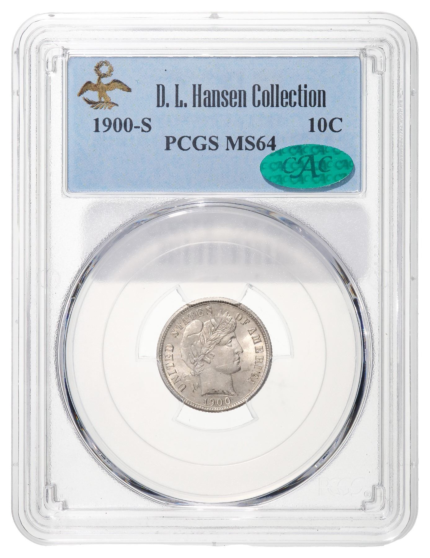 from the D. L. Hansen Collection, PCGS graded Mint State 64. CAC.