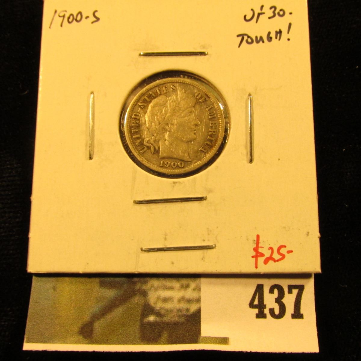 1900-S Barber Dime, VF30, tough grade for date, value $25