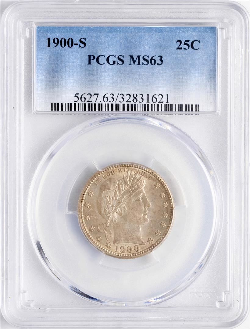 One 1900-S Barber Quarter Coin PCGS MS63. PCGS Graded.