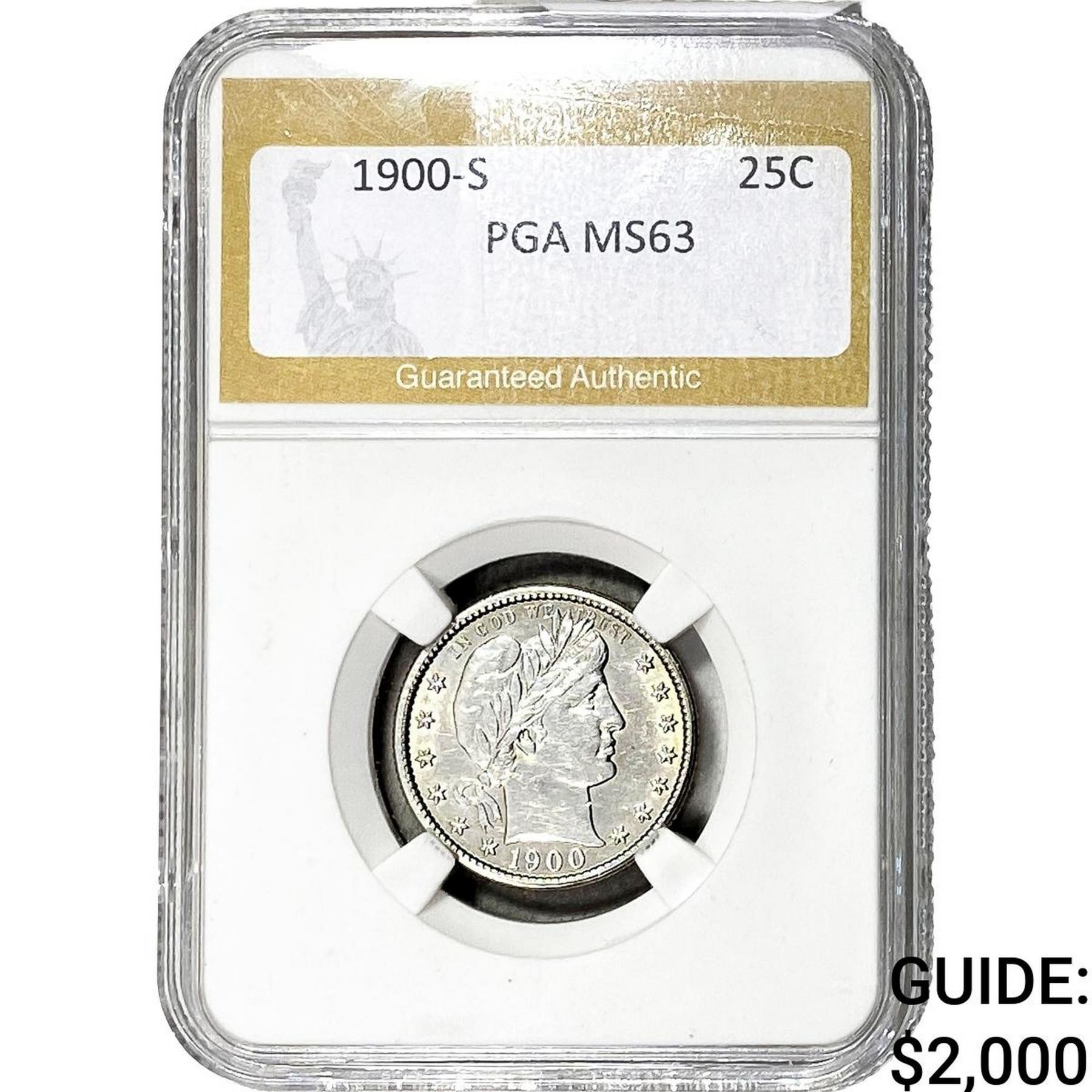 1900-S Barber Quarter PGA MS63