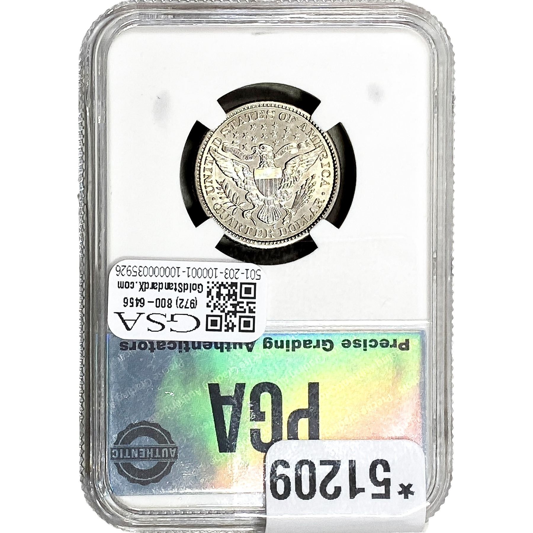 e. Coins sold referencing a third-party grading service are sold “AS IS” without any express or implied warranty, except for a guarantee by GSA that they are genuine. Removal or alteration of the holder, voids all of Bidder’s claims concerning that Product. Certain warranties may be available from the grading services and Bidders are referred to them for further details: Numismatic Guaranty Corporation (NGC), PO Box 4776, Sarasota, FL 34230, www.ngccoin.com/services/writtenguarantee.asp; Professional Coin Grading Services (PCGS), PO Box 9458, Newport Beach, CA 92658, www.pcgs.com/guarantee.html; ANACS, 6555 S. Kenton St., Ste. 303, Englewood, CO 80111; and Independent Coin Grading Co. (ICG), 7901 East Bellview, Ave., Suite 50, Englewood, CO 80111.