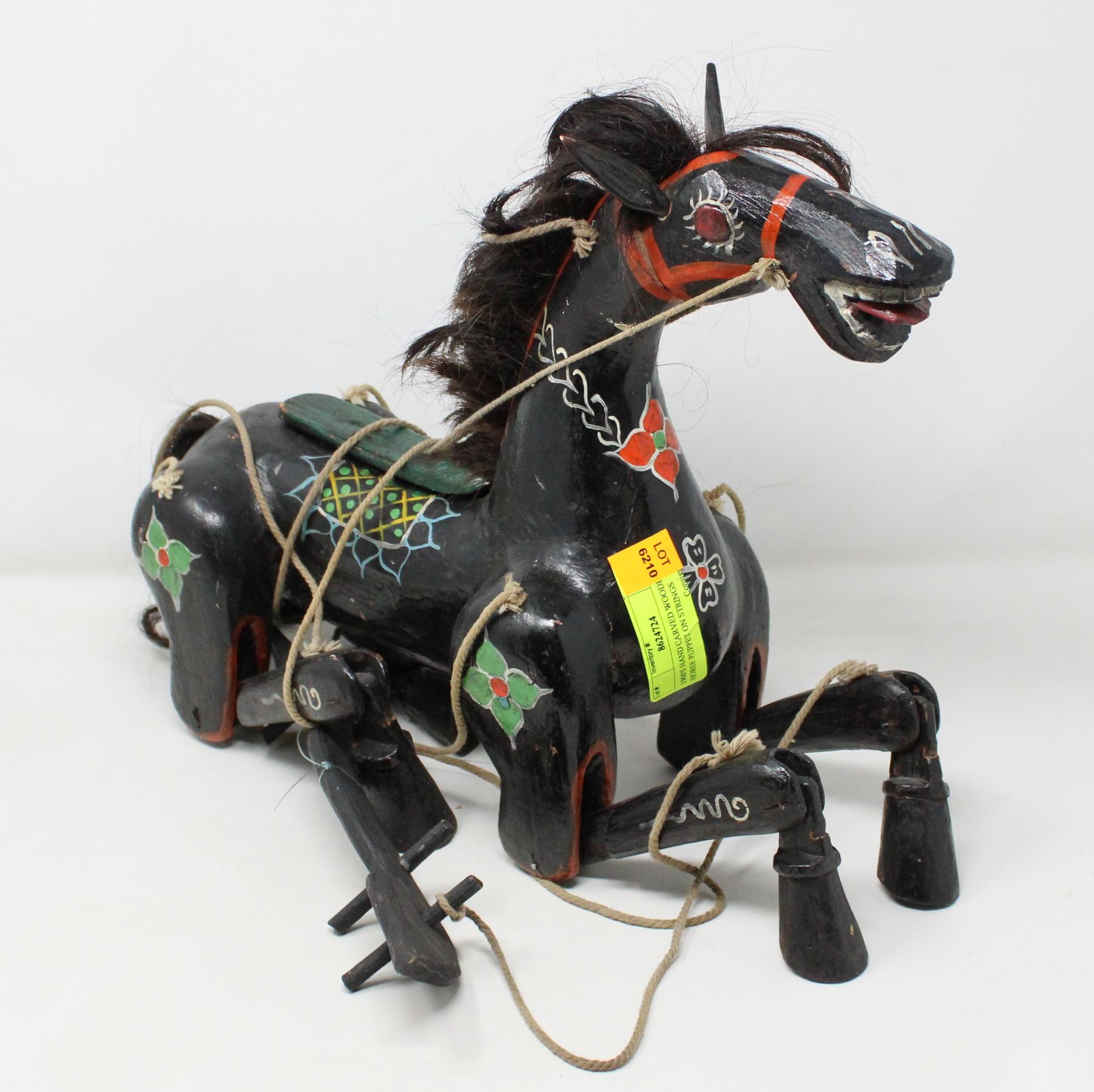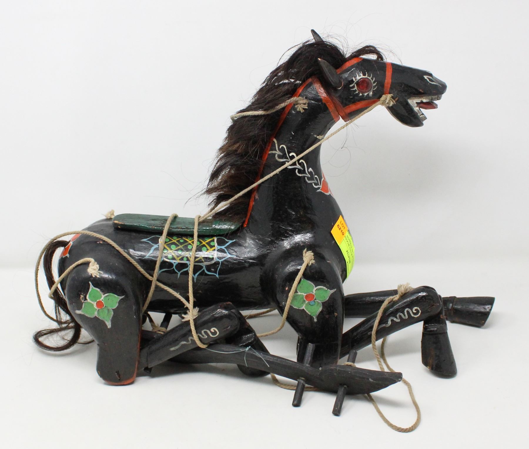 1900'S HAND CARVED WOODEN HORSE PUPPET ON STRINGS