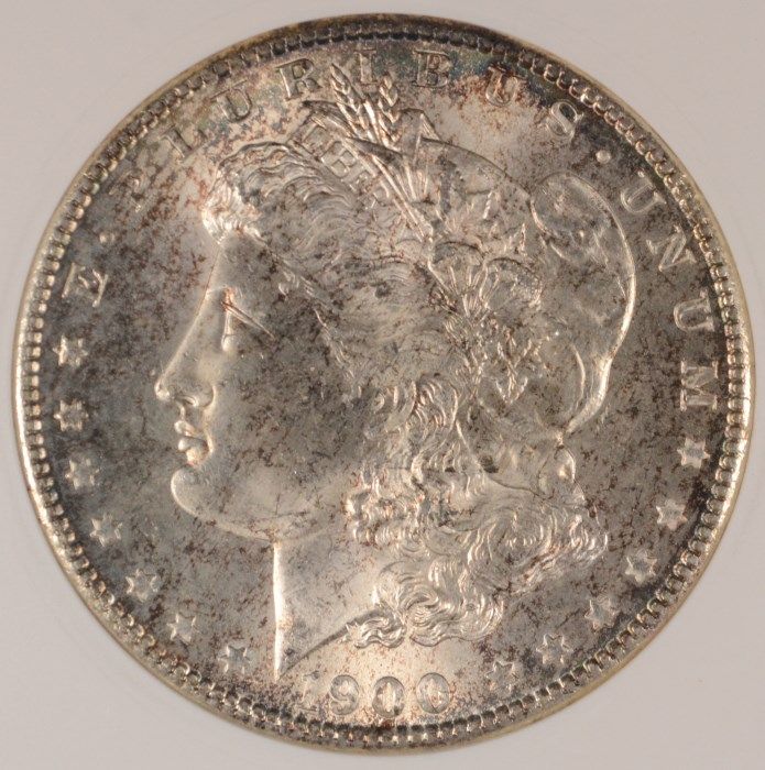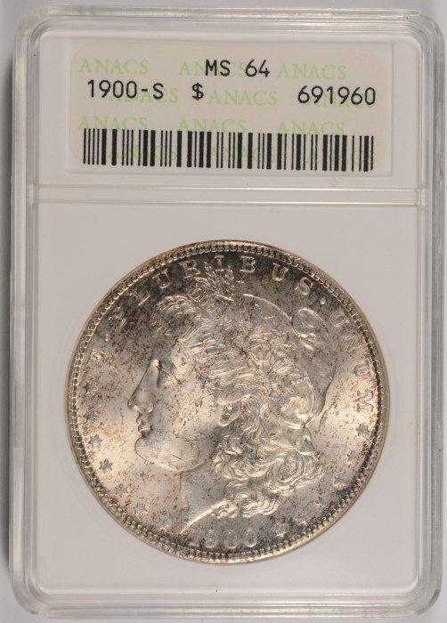 1900-S MORGAN SILVER DOLLAR, ANACS MS-64 WITH COLOR!
