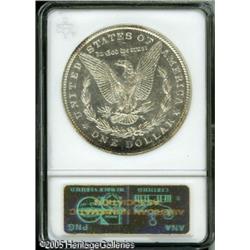 <B>1900-S<img border='0' src='http://www.heritagecoins.com/images/star.gif' width=10 height=10>$1 MS64 Prooflike ANACS.</B></I> Whispers of russet and cobalt-blue attach to portions of the rims. The prooflike fields offer a mild contrast with the devices. Lot:10576