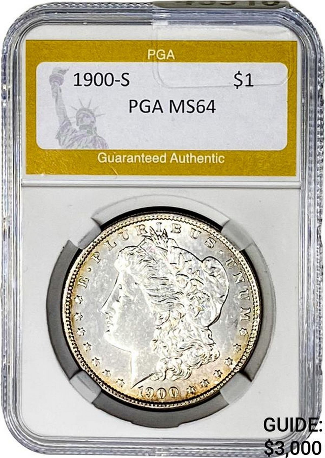 COINS AND CURRENCY LISTED IN GSA’S CATALOG AS GRADED AND ENCAPSULATED BY PCGS, NGC, ANACS, ICG, PCGS CURRENCY, PMG, PCGS BANKNOTE GRADING, CMC OR ANY OTHER THIRD-PARTY GRADING SERVICE ARE LIKEWISE SOLD “AS-IS” EXCEPT AS EXPRESSLY SET FORTH HEREIN. ALL THIRD-PARTY GRADING SERVICE GUARANTEES, INCLUDING AUTHENTICITY, ARE THE SOLE RESPONSIBILITY OF THE THIRD-PARTY GRADING SERVICE AND NOT WARRANTIES OR GUARANTEES OF GSA. BIDDERS SHOULD CONTACT THESE THIRD-PARTY GRADING SERVICES DIRECTLY WITH RESPECT TO ANY CLAIMS OR QUESTIONS THEY MAY HAVE CONCERNING THEIR GUARANTEES AND WARRANTIES. BIDDERS ACKNOWLEDGE AND AGREE THAT AUCTIONEER IS NOT BOUND BY OR LIABLE FOR ANY OPINION OR CERTIFICATION BY ANY THIRD-PARTY GRADING SERVICE. REMOVAL OF A PRODUCT FROM ITS PROTECTIVE CASING OR HOLDER OR ALTERATION OF ANY COIN HOLDER WAIVES ALL RIGHTS CONCERNING THE PRODUCT CONTAINED THEREIN.