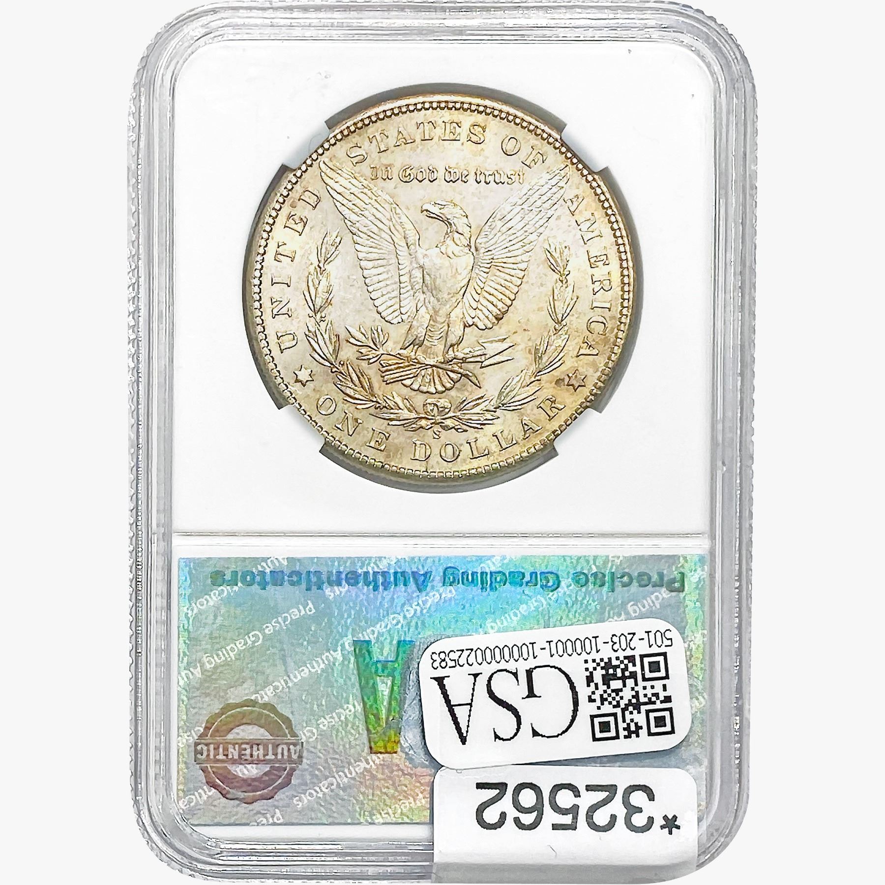 COINS AND CURRENCY LISTED IN GSA’S CATALOG AS GRADED AND ENCAPSULATED BY PCGS, NGC, ANACS, ICG, PCGS CURRENCY, PMG, PCGS BANKNOTE GRADING, CMC OR ANY OTHER THIRD-PARTY GRADING SERVICE ARE LIKEWISE SOLD “AS-IS” EXCEPT AS EXPRESSLY SET FORTH HEREIN. ALL THIRD-PARTY GRADING SERVICE GUARANTEES, INCLUDING AUTHENTICITY, ARE THE SOLE RESPONSIBILITY OF THE THIRD-PARTY GRADING SERVICE AND NOT WARRANTIES OR GUARANTEES OF GSA. BIDDERS SHOULD CONTACT THESE THIRD-PARTY GRADING SERVICES DIRECTLY WITH RESPECT TO ANY CLAIMS OR QUESTIONS THEY MAY HAVE CONCERNING THEIR GUARANTEES AND WARRANTIES. BIDDERS ACKNOWLEDGE AND AGREE THAT AUCTIONEER IS NOT BOUND BY OR LIABLE FOR ANY OPINION OR CERTIFICATION BY ANY THIRD-PARTY GRADING SERVICE. REMOVAL OF A PRODUCT FROM ITS PROTECTIVE CASING OR HOLDER OR ALTERATION OF ANY COIN HOLDER WAIVES ALL RIGHTS CONCERNING THE PRODUCT CONTAINED THEREIN.