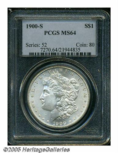 <B>1900-S<S$1> MS64 PCGS.</B></I> Softly struck above Liberty's ear, with shimmering, bright-white surfaces that only show a wispy pinscratch, on Liberty's jaw, and a small milling mark on her neck, that prevent the Gem grade assessment. Except for a small planchet void (as struck), in the field area beneath Liberty's chin, the remaining surfaces seem nearly flawless.