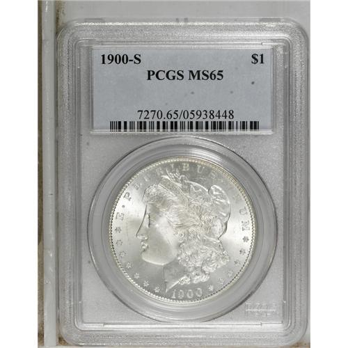<B>1900-S S$1 MS65 PCGS.</B></I> Dazzling luster exudes from both sides of this S-mint Gem, and an adequate strike brings out good definition on the design elements. Essentially untoned, and free of significant marks.<BR><BR><b>Shipping:</b> Coins & Currency (<a target="_blank" href="http://www.heritageauctions.com/common/shipping.php">view shipping information</a>)