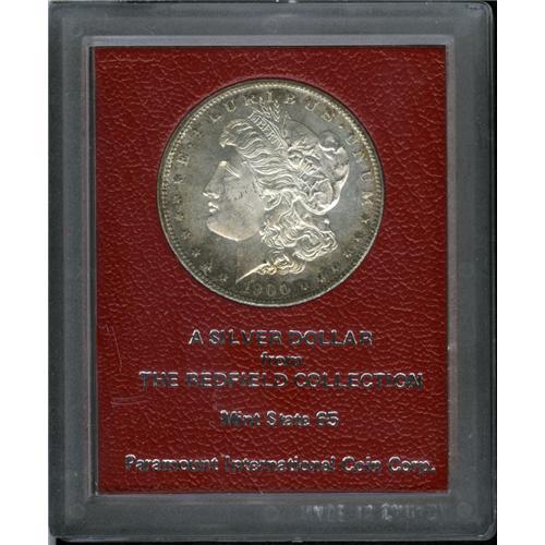 <B>1900-S<img border='0' src='http://www.heritagecoins.com/images/star.gif' width=10 height=10>$1> Morgan Dollar MS65 Paramount International (MS63).</B></I> Ex: Redfield. A semi-prooflike better date dollar with rich russet, aquamarine, and plum toning throughout the borders. The obverse on its own is well preserved, but the eagle's breast has a few distributed marks. <BR><BR><B>Important notice:</B> Heritage usually auctions material at the rate of 200-250 lots per hour. On some occasions eBay Live bid software or the Internet may not be able to keep up with the pace of the auction. We recommend placing a realistic absentee bid now as insurance to avoid disappointment. Occasionally the auctioneer may eliminate or reject an eBay Live bid, and the auctioneer may also reopen a lot after the close of the eBay live bidding (usually because we missed an audience bid), and may reject your bid even if it shows you as the winning bidder. By bidding via eBay Live, you agree that Heritage may award the lot to another bidder at its sole discretion under the circumstances described above or any other reasonable circumstances. Since eBay bids are not shown to us until we open the lot on the floor, we treat those bids just like floor bids. In most cases the floor responds before the eBay bid is presented to us, due to Internet lag time, so for consistency we have made it a policy that floor bids are always considered first over tie eBay live bids. Also please note that all Heritage lots purchased through eBay Live carry a 20% Buyer's Premium. Please make sure you read the Terms and Conditions before you bid. This lot is being auctioned in conjunction with a live floor auction by Heritage Galleries & Auctioneers. All final auction and invoice information will be supplied by Heritage Galleries & Auctioneers, and all other information should be considered preliminary. Lot:5429 <BR><BR><B>Winning Notification and Billing:</B> After the FINAL session in this auction is complete, Heritage will send e-mail and snail mail invoices. This process normally takes several days. All final auction and invoice information will be supplied by Heritage Galleries & Auctioneers, and all other information should be considered preliminary. <BR><BR>This auction will be conducted on a live auction floor and over the Internet through eBay Live. If you choose to place an absentee bid, please take a moment to <font color='#0000ff'><u><a href='http://pages.ebay.com/liveauctions/help/before/laabsentee.html'>learn how eBay Live absentee bidding works</a></u></font><font color='#000000'>
