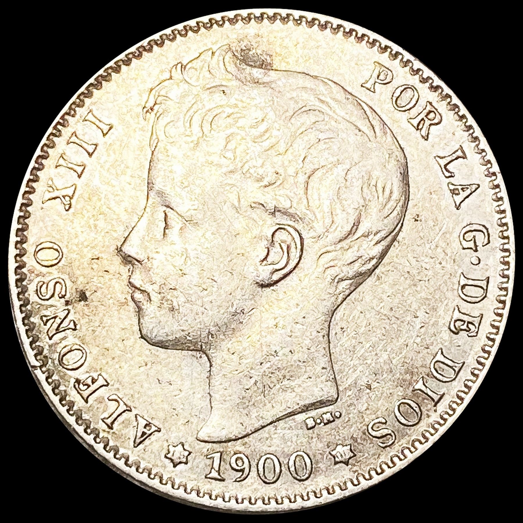 1900 Spain Silver 1 Peseta CLOSELY UNCIRCULATED