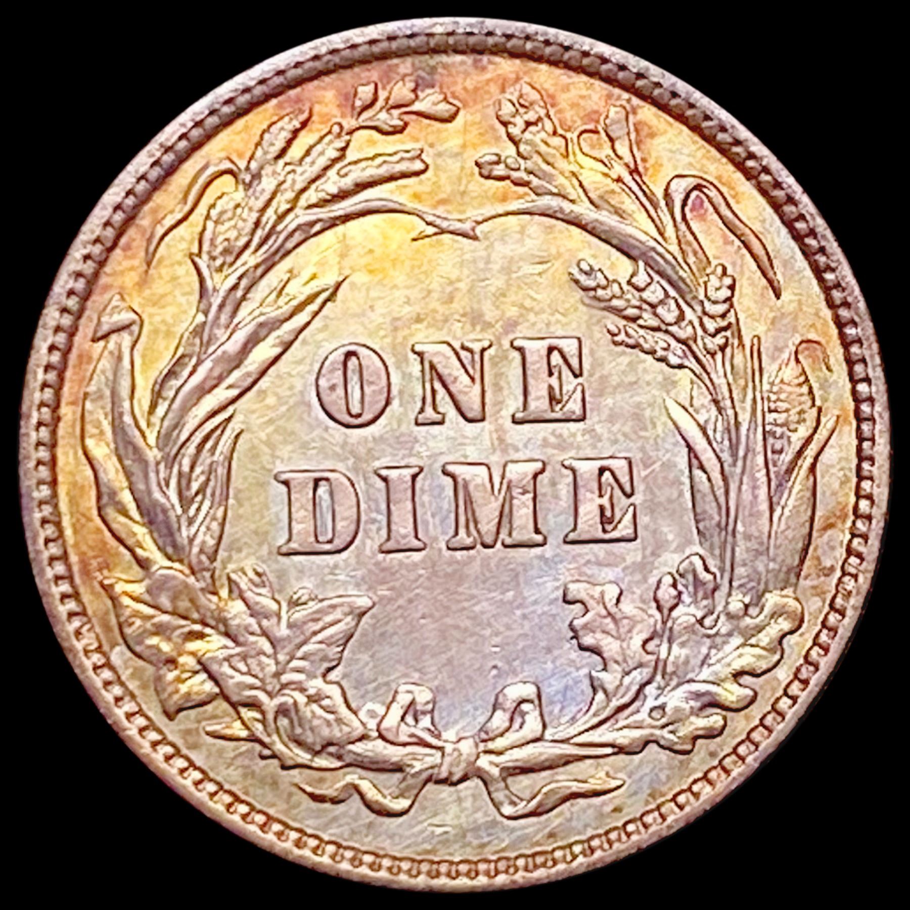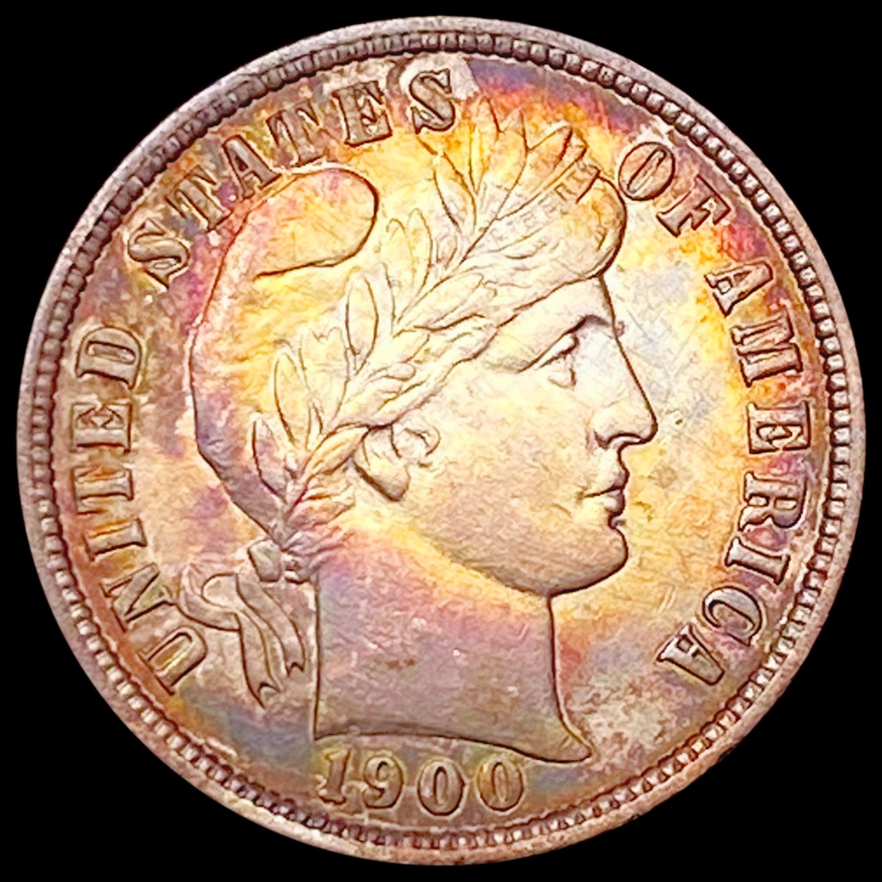 1900 Toned Barber Dime GEM BU