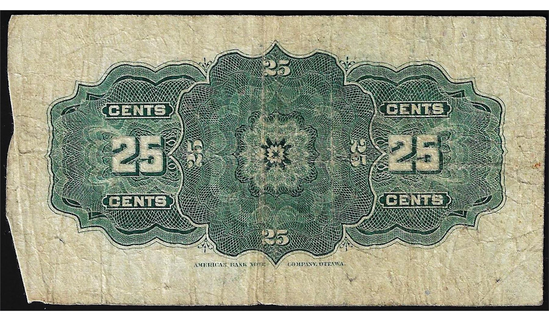 One 1900 Twenty Five Cent Dominion of Canada Bank Note.