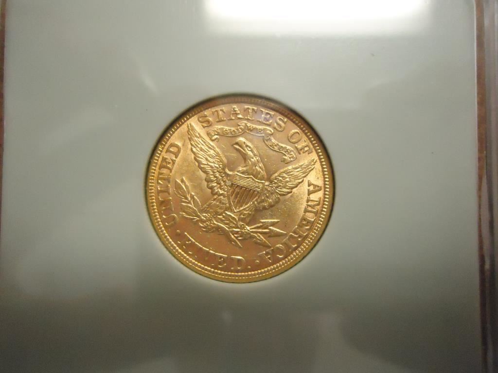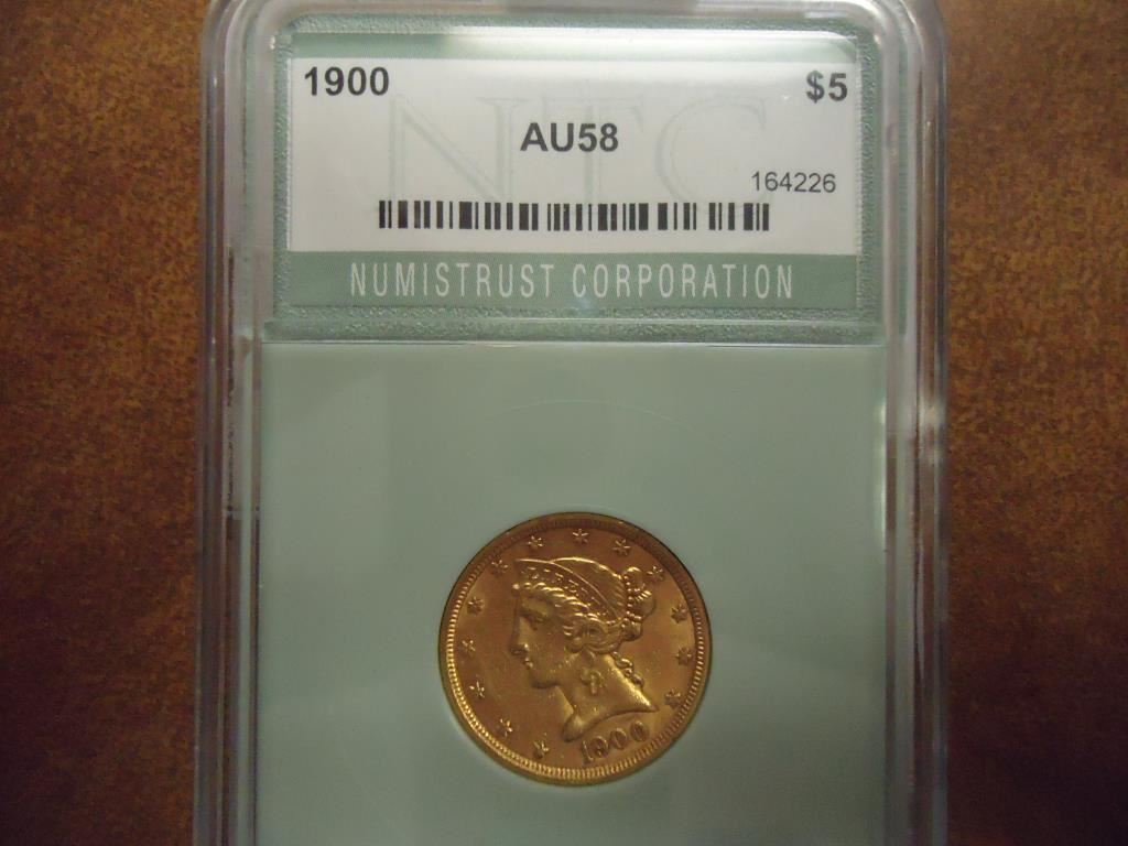 1900 US $5 GOLD LIBERTY HALF EAGLE NTC AU58