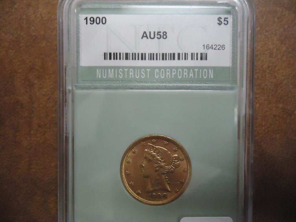 1900 US $5 GOLD LIBERTY NTC AU58
