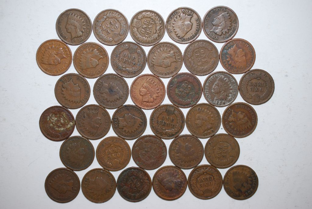 1900 US Indian Head One Cent; Various Conditions; Lot of 34; EST. $30-60