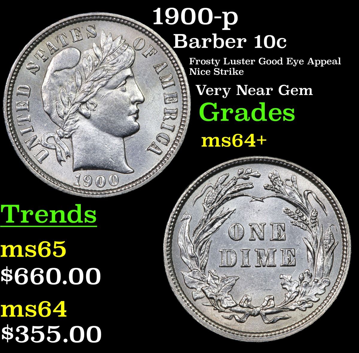 1900-p Frosty Luster Good Eye Appeal Nice Strike Very Near Gem Barber Dime 10c Grades Choice+ Unc.