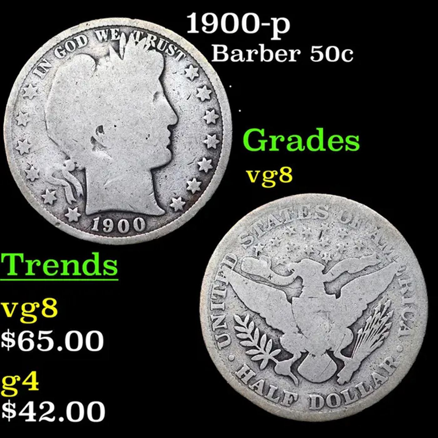 1900-p Barber Half Dollars 50c Grades vg, very good.