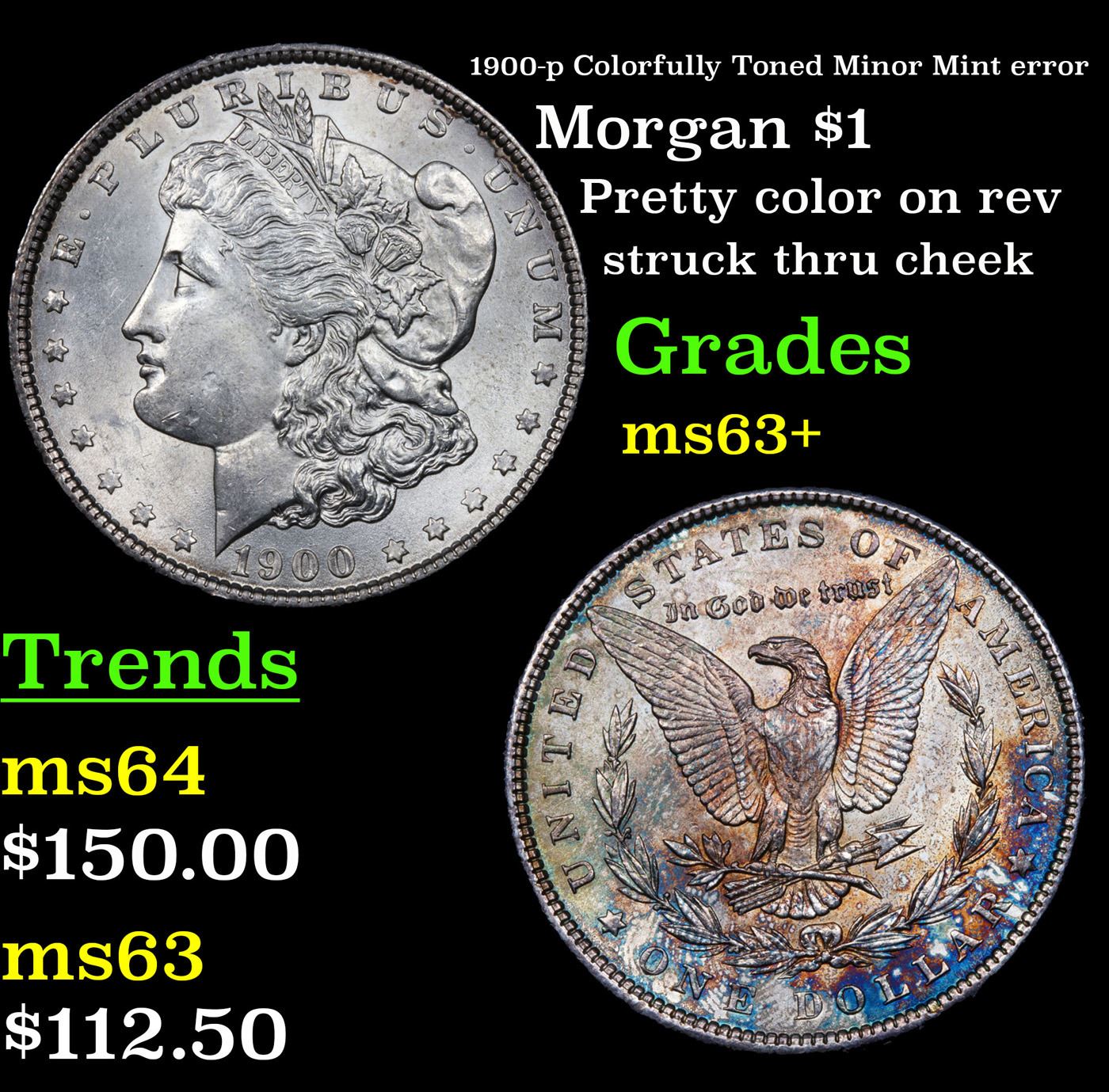 1900-p Colorfully Toned Minor Mint error Morgan Dollar $1 Grades Select+ Unc.