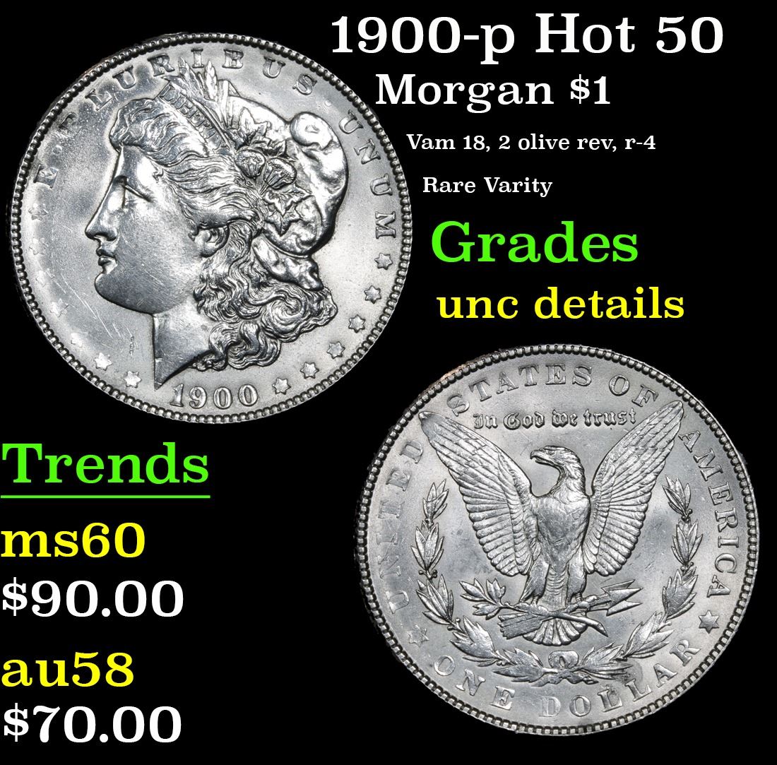 1900-p Hot 50 Vam 18, 2 olive rev, r-4 Rare Varity Morgan Dollar $1 Grades Unc Details.