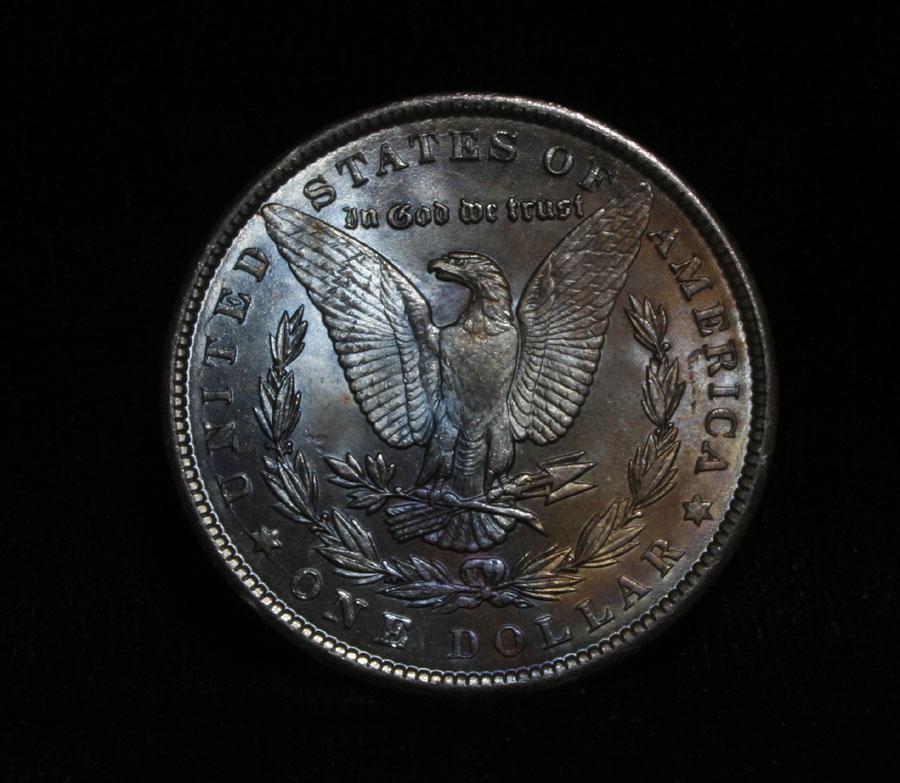 Vastly superior eye appeal due to the wild deep rainbow toning on the Reverse. The Obverse is blast white. Estimated Value $150