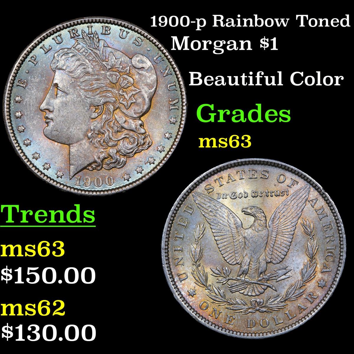 1900-p Rainbow Toned Beautiful Color . Morgan Dollar $1 Grades Select Unc.