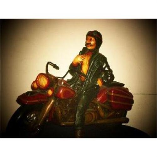 This is a beautifully hand-made figure of an early 1900's biker on his motorcycle. This figure is in excellent antique condition. It's great for display and a great collectible. The motorcycle's wooden wheels can actually move when its pushed forward! (please feel free to ask any questions/concerns about this great collectible)