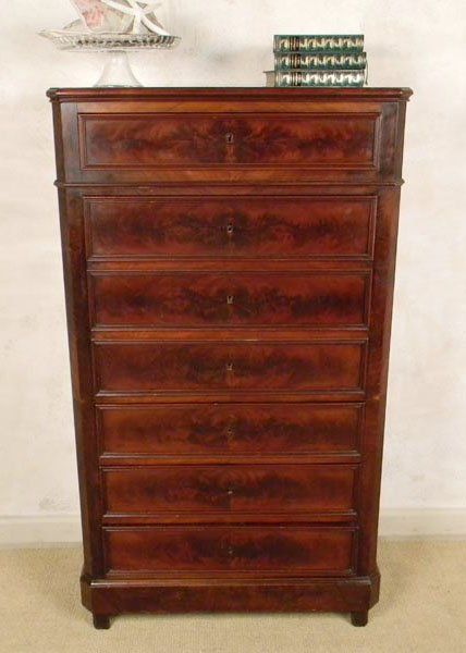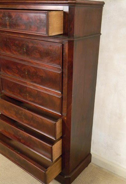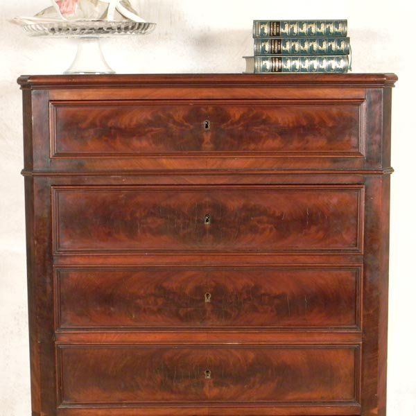 1900's French Louis Phillipe chest with hidden Secretary cover of Flemish mahogany veneers. Size 53x32x14 inches