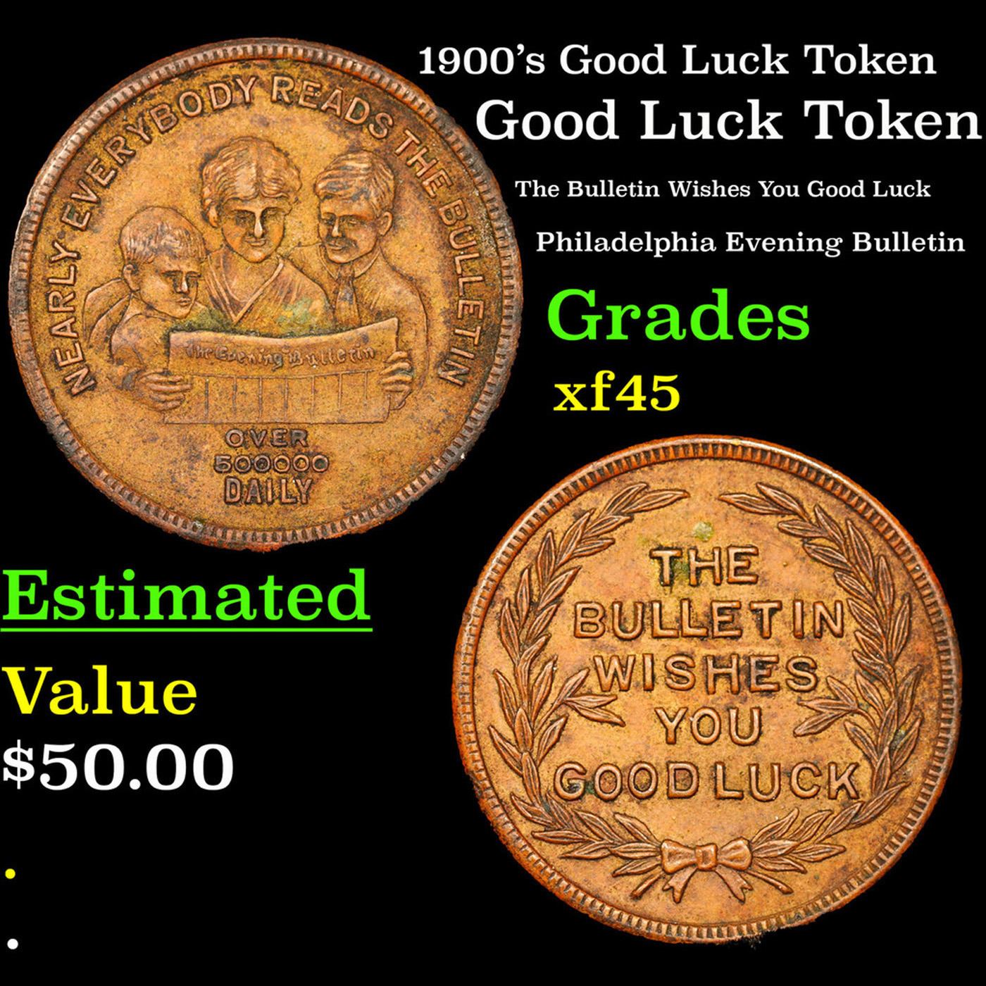 1900's Good Luck Token Grades xf+. The Philadelphia Bulletin was a daily evening newspaper published from 1847 to 1982 in Philadelphia, Pennsylvania. It was the largest circulation newspaper in Philadelphia for 76 years and was once the largest evening newspaper in the United States. Its widely known slogan was: "In Philadelphia, nearly everybody reads The Bulletin."