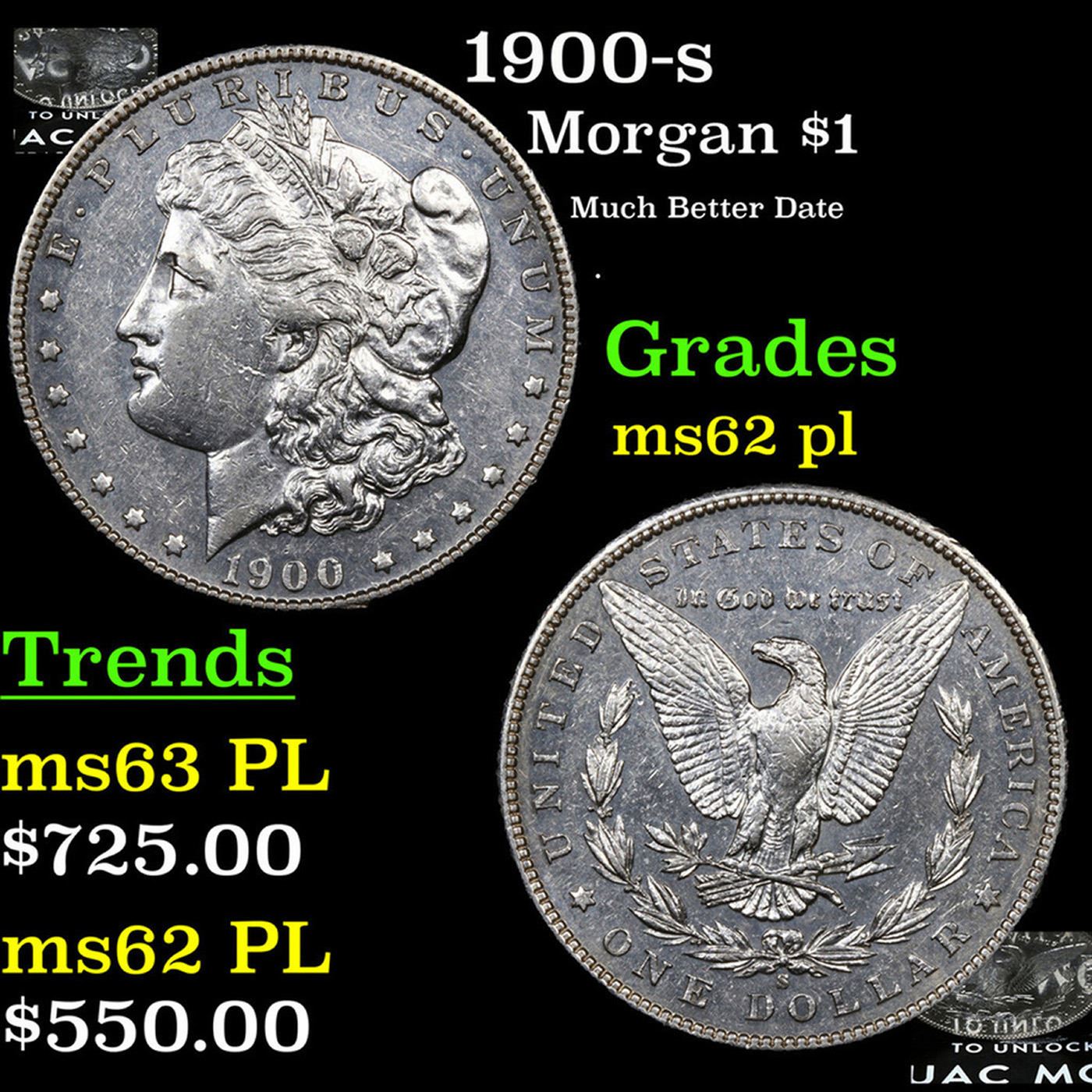 1900-s Morgan Dollar $1 Grades Select Unc PL