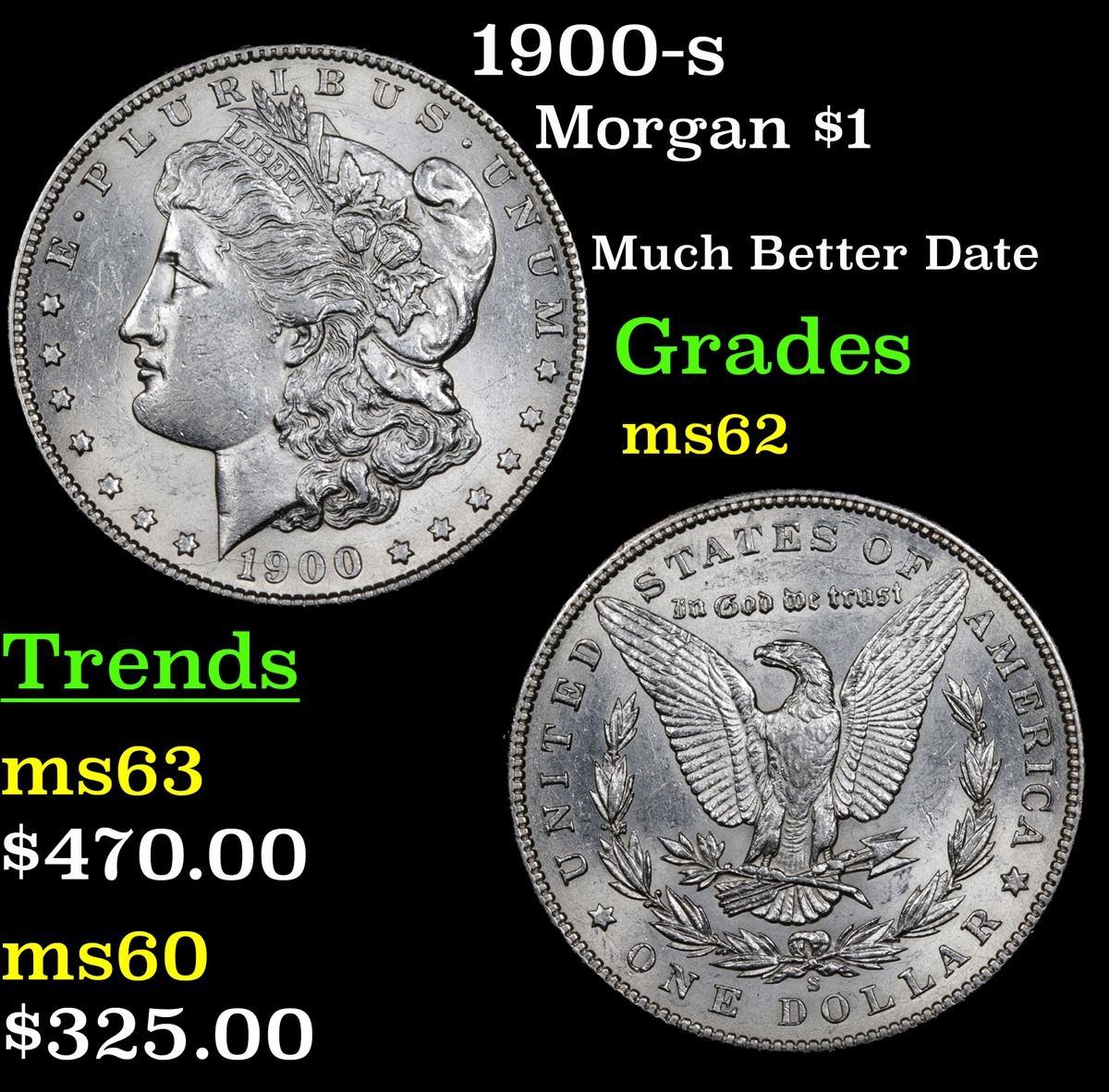 1900-s Much Better Date . Morgan Dollar $1 Grades Select Unc.
