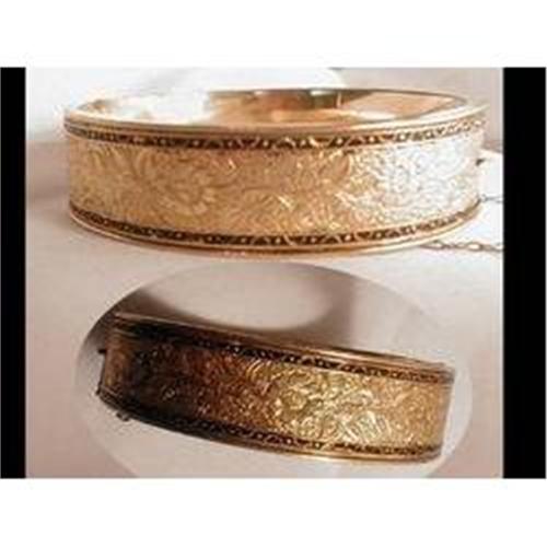 <tr><td>Title:1900's Victorian ENAMEL Etched hinged bracelet</td></tr>