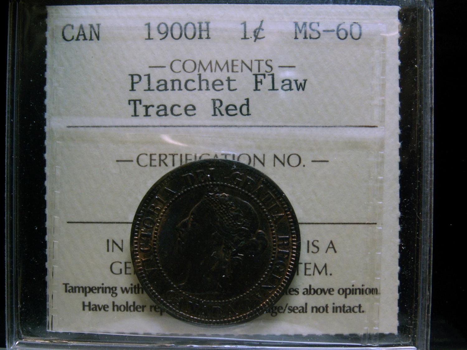 1900H 1¢ ICCS MS60 Trace Red Planchet Flaw
