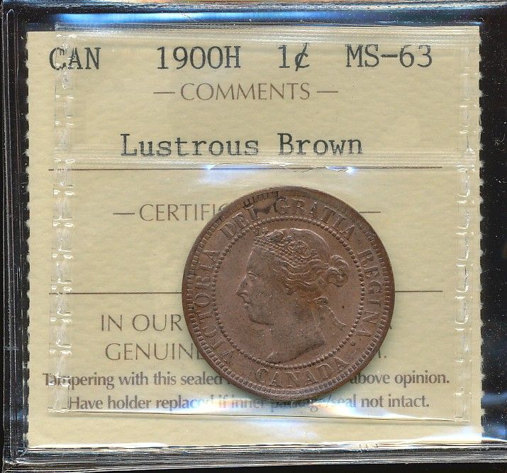 1900H 1¢ ICCS MS63 Lustrous BN.