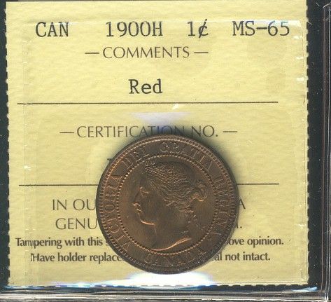 1900H 1¢ ICCS MS65RD. Full red. Looks better than the grade assigned. Superb Gem.