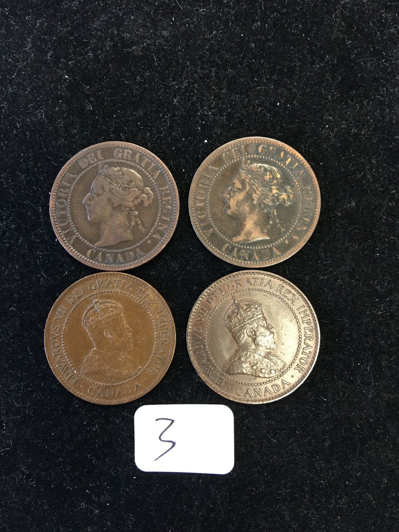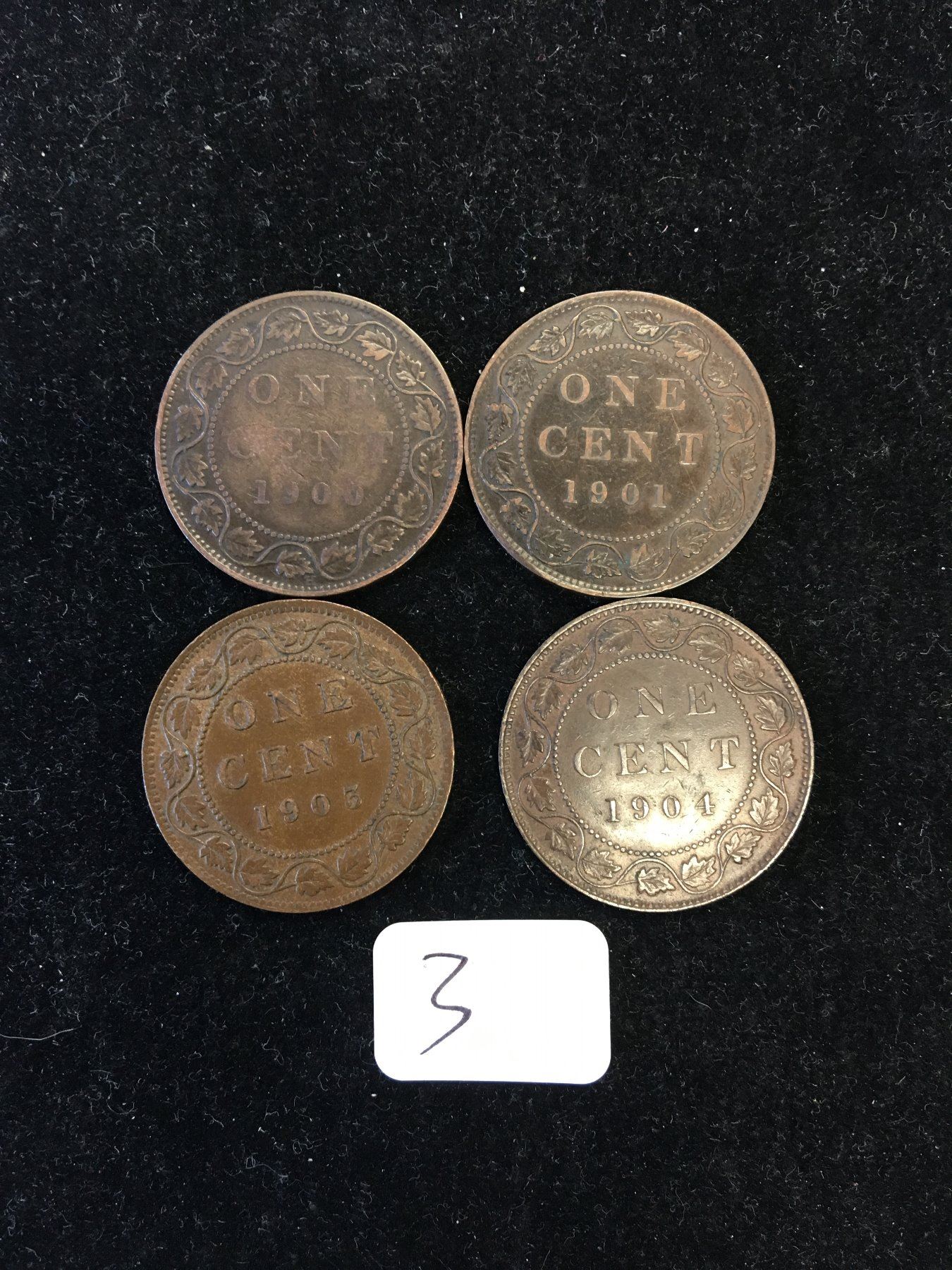 NICE LOT OF 4 CANADA LARGE CENTS.1900H-F-12..1901-EF-40,1903AU-50,1904-AU-55