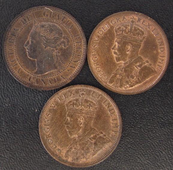 1900H, 1911, 1920 Large 1¢, all MS60 or better.