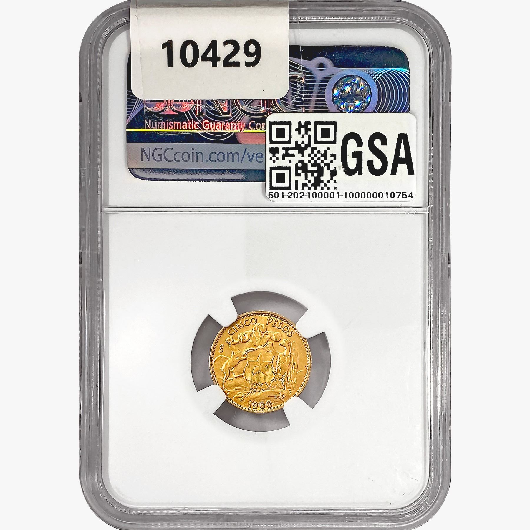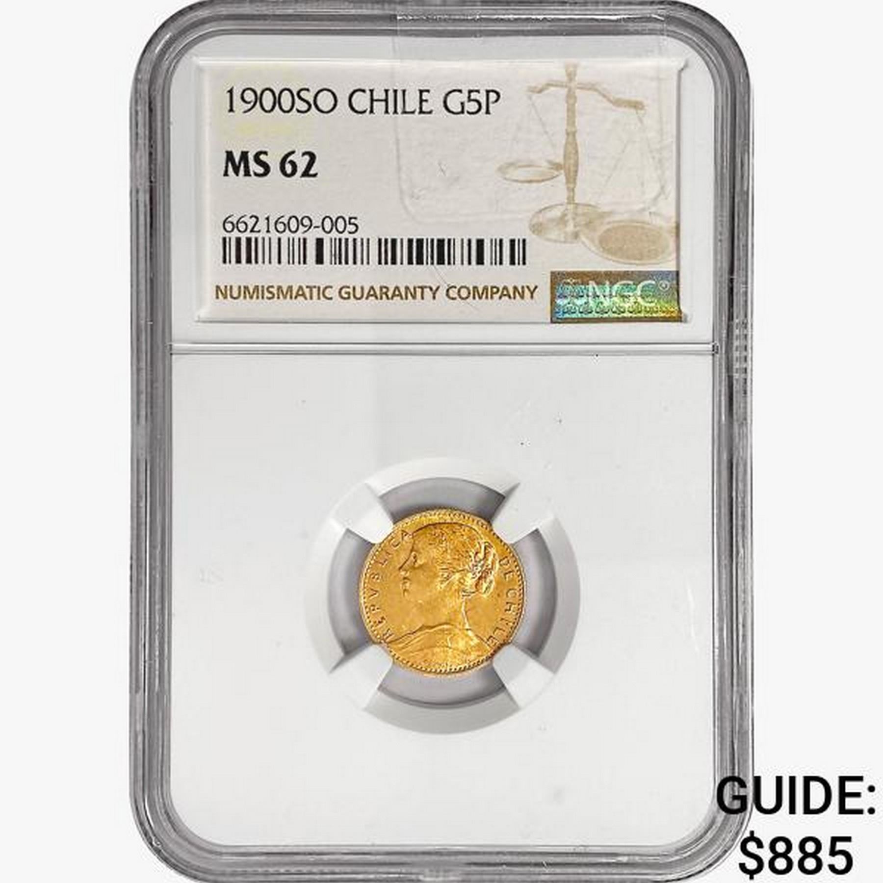 1900SO Chile 5 Pesos .0883oz. Gold NGC MS62