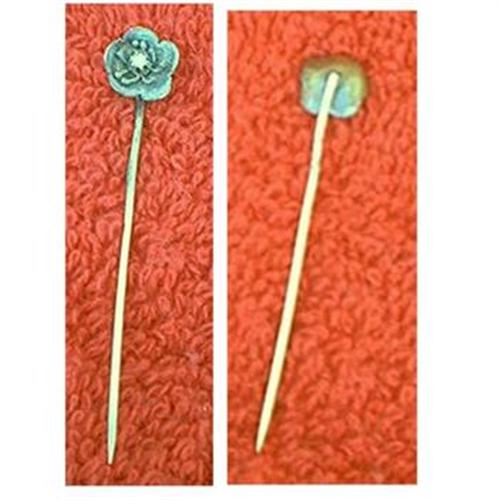 This is a 14K yellow gold stick pin in the shape of a flower with a tiny diamond chip in the center. It is about 2" long and in excellent condition. I am guessing it is probably from the early 1900s. A very simple but yet eleqant one.